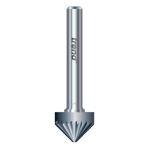 Fraise conique. tige 1/4 (6,35mm). Outil pour le métal, le verre, le plastique à fibres de verre, (GRP), le plastique et le bois. Sculpture, retrait de soudure et élargissement de trous percés. tête au carbure solide. Pour le retrait des soudures et bavures dans le métal et également pour graver et sculpter le bois et le métal. Caractéristiques: D=16 mm C=10 mm A=45 degrés Diamètre queue=1/4 pouce